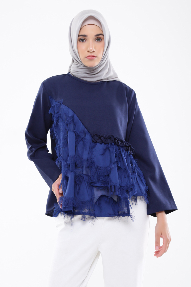 Saatnya tampil total dengan balutan blus cantik yang menampilkan perpaduan detail fur dan aksen layer menarik.