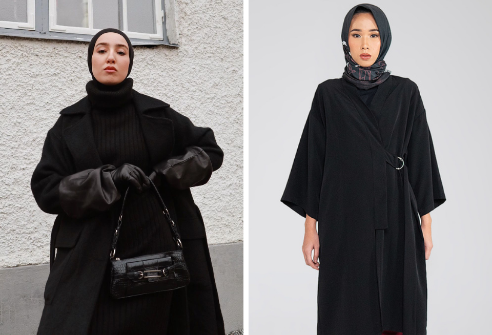 Black long outer selalu bisa jadi pilihan untuk kamu yang ingin tampil penuh statement tanpa repot. Cukup padukan dengan pakaian serba hitam dan hijab berwarna senada. Viola, kamu sekejap terlihat penuh gaya.