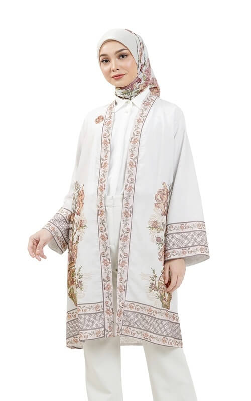 Warnanya yang putih bersih juga menciptakan kesan anggun dan mewah, sangat cocok untuk tampilan yang feminin. Untuk menonjolkan motif floralnya, inner putih polos bisa menjadi pilihan sempurna untuk kamu pakai agar detail outer tetap menjadi pusat perhatian.