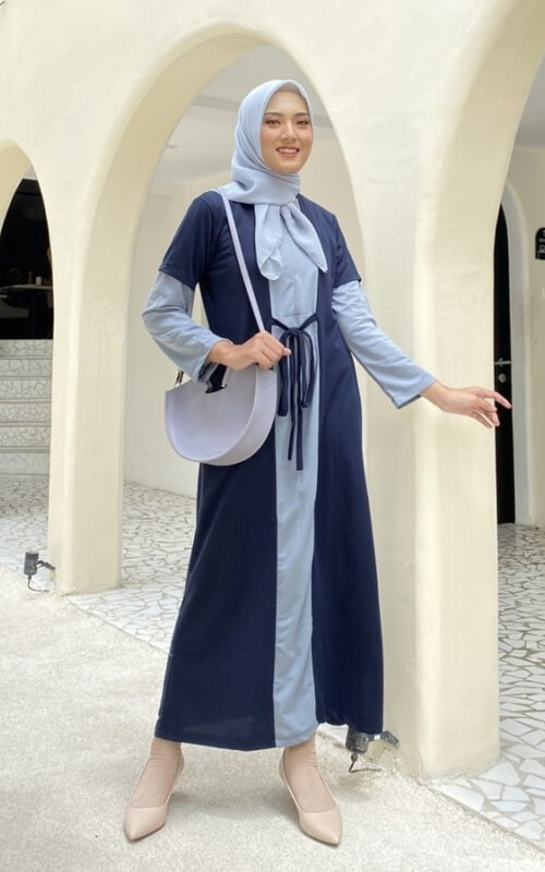 Outfit yang satu ini bisa jadi pilihan terbaik untuk kamu yang suka pakai gamis dan ingin tetap terlihat casual.