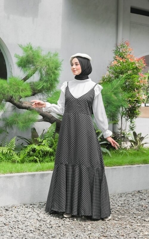 Overalll hitam bermotif polka-dot putih yang elegan ini bisa menjadi teman untuk OOTD kamu, Dear! Potongan overall ini memanjang hingga ke bawah, memberikan kesan anggun dan modern. Overall ini memiliki aksen ruffle di bagian bawah, menambahkan sentuhan feminin yang lembut.
