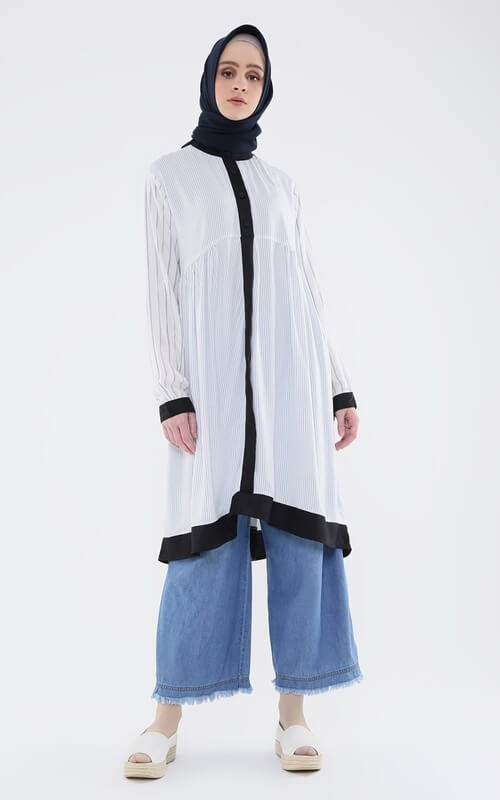 2. Tunik Monokrom dengan Kulot Jeans