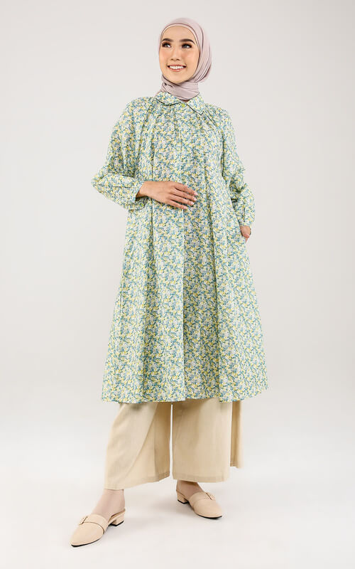 Tunik bermotif yang satu ini sangat cocok untuk menciptakan tampilan yang segar dan elegan. Potongannya yang tidak terlalu lebar akan membuat kamu tampak lebih ramping.
