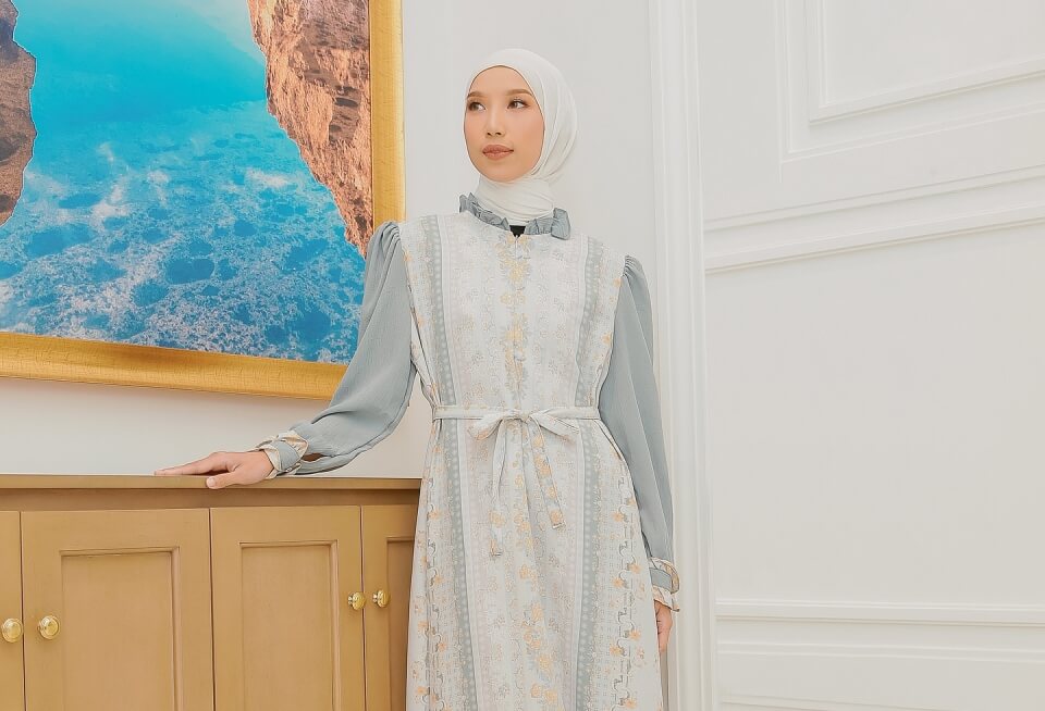 Long dress dua warna ini bisa jadi alternatif OOTD vintage hijab rok yang kece abis buat formal occasion, Dear. Kombinasi light grey dan putih beri kesan simpel tapi tetap menarik dengan aksen bordir dan ruffle.
