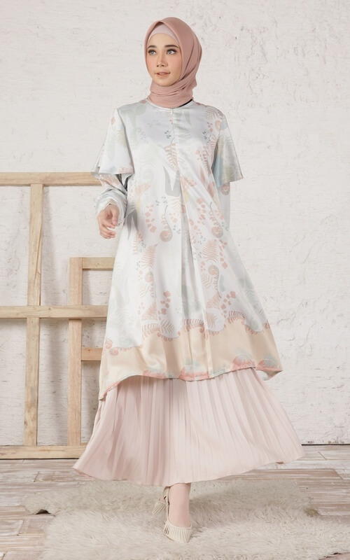 Berbalut warna ligh grey, tunik ini terkesan netral dan cocok dijadikan outfit ke kantor. Potongannya longgar dan panjang jadi pas buat kamu yang berhijab. Perpaduan kain polos dan motif abstrak di satu sisi bikin tunik terkesan lebih trendy, dan makin kekinian dengan tambahan aksen plisket.