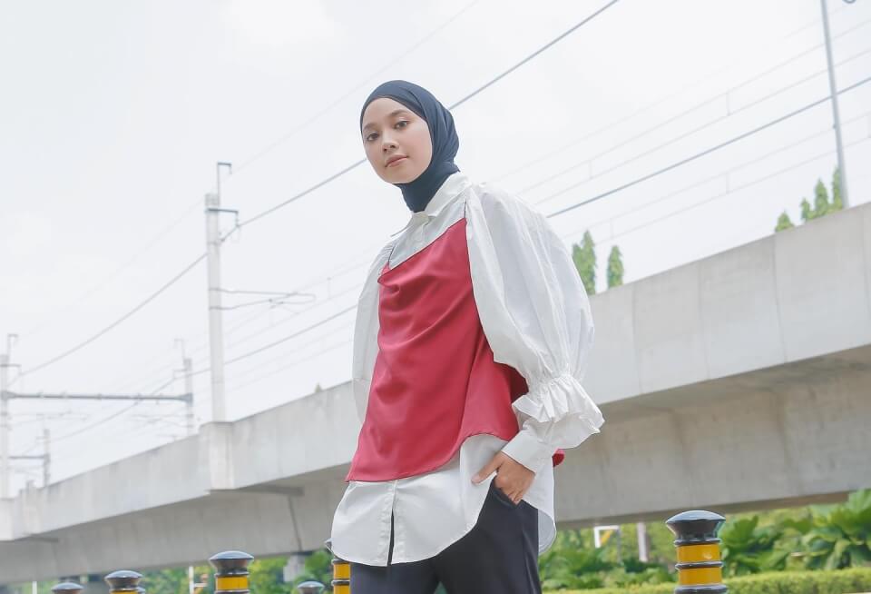 Potongan tunic yang longgar juga menambah elemen dramatis pada outfit, menciptakan tampilan yang unik dan eye-catching. Bawahan yang bisa kamu padukan adalah celana panjang merah Warna merah yang konsisten dari hijab hingga bawahan mencerminkan semarak HUT RI, Dear!