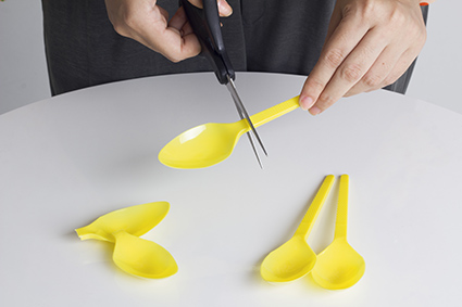 - Potong gagang sendok plastik dengan menyisakan sedikit bagian gagangnya.