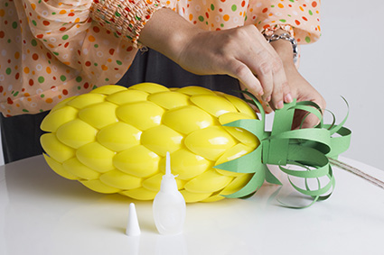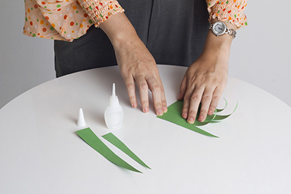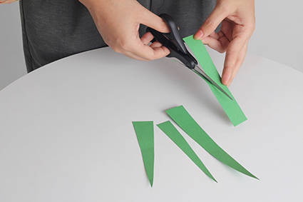 - Untuk daun bagian atasnya, polanya cukup membuat bentuk segitiga dengan berbagai ukuran. Susun segitiga tersebut dalam dua baris yang tidak beraturan. Untuk menempel susunan daun tersebut bisa menggunakan lem atau double tape.