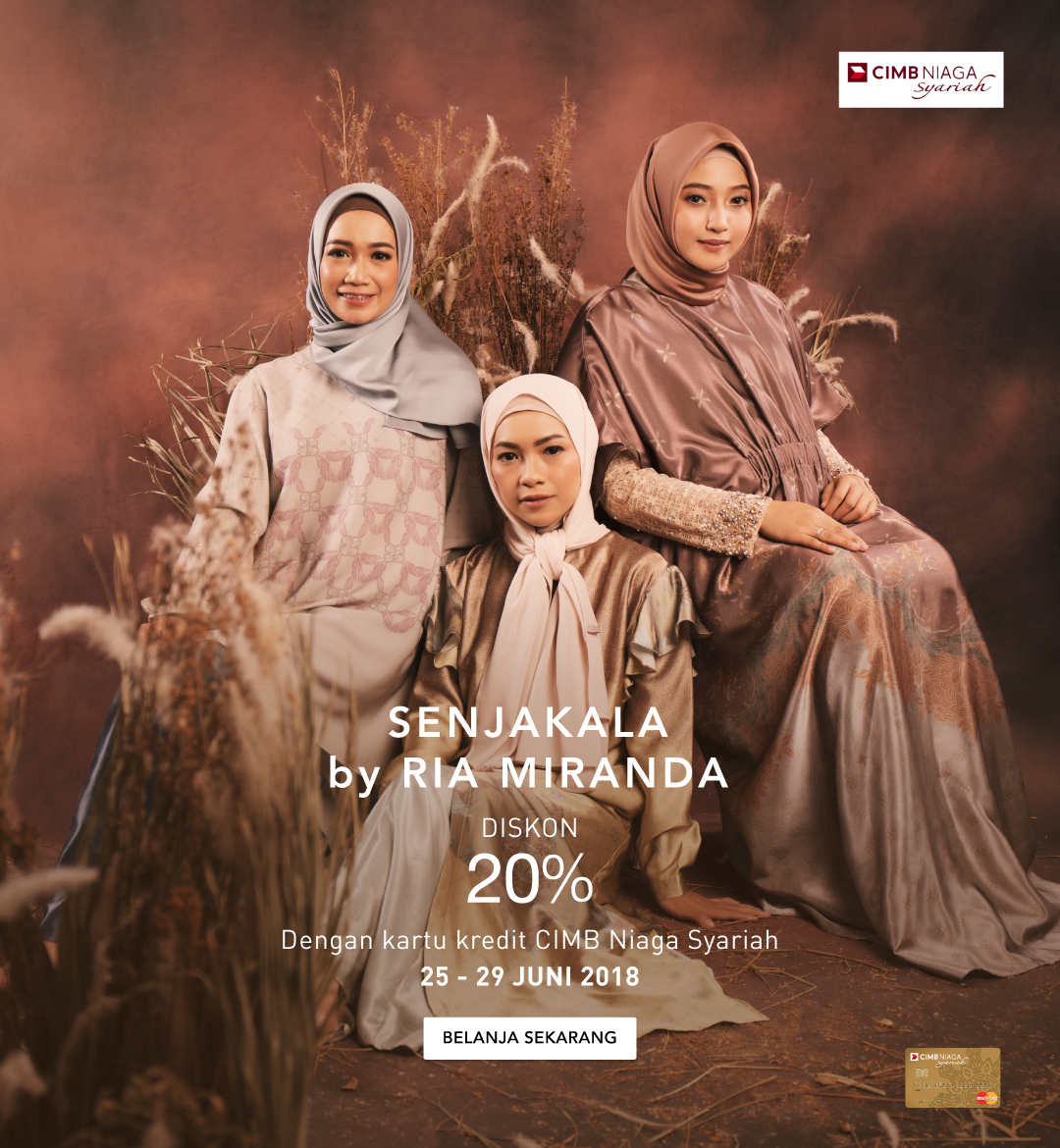 Nikmati potongan sebesar 20% dengan minimal transaksi Rp500.000 untuk produk Ria Miranda dengan cara memilih metode pembayaran "CIMB Syariah Credit Card".