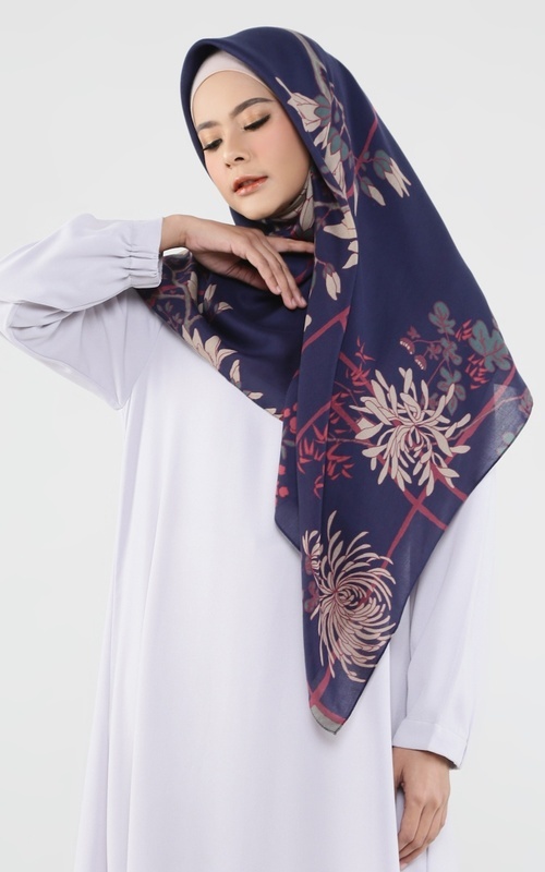 Model hijab pertama yang cocok untuk padanan tunik brokat adalah hijab segi empat motif. Jilbab motif selalu bisa menghadirkan kesan atraktif dan mewah. Kamu bisa memilih motif yang simpel agar tunik brokat tetap menjadi center-point.
