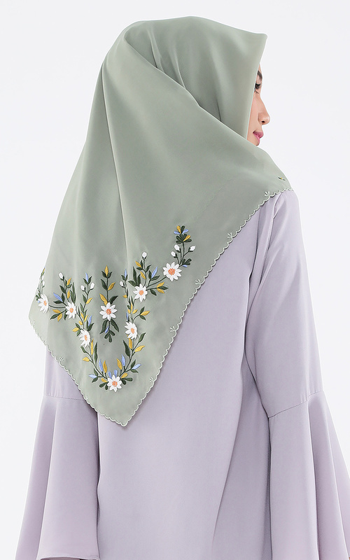 Pilihan selanjutnya yang juga tidak kalah cantik nan mewah adalah hijab dengan detail bordir yang kontras. Sentuhan aksen bordir yang kontras bisa menghadirkan kesan mewah nan manis.