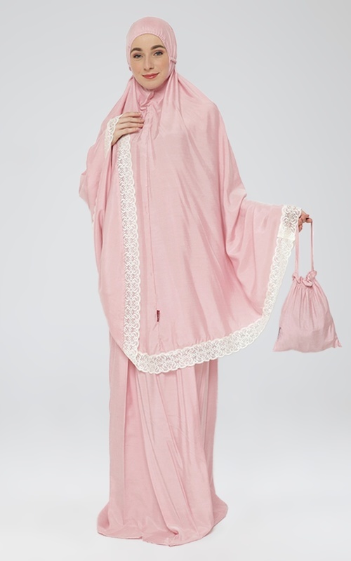 Mukena dengan aksen lace bisa kamu pakai salat untuk Idul Adha. Aksen lace yang enggak ada matinya untuk mukena ini bisa juga kamu pakai untuk salat sehari-hari. Mukena dengan bahan yang nyaman dan ringan serta dilengkapi dengan tas, cocok untuk dibawa kemana mana.