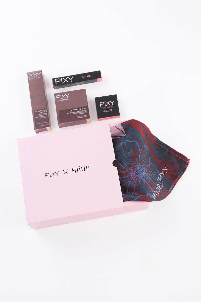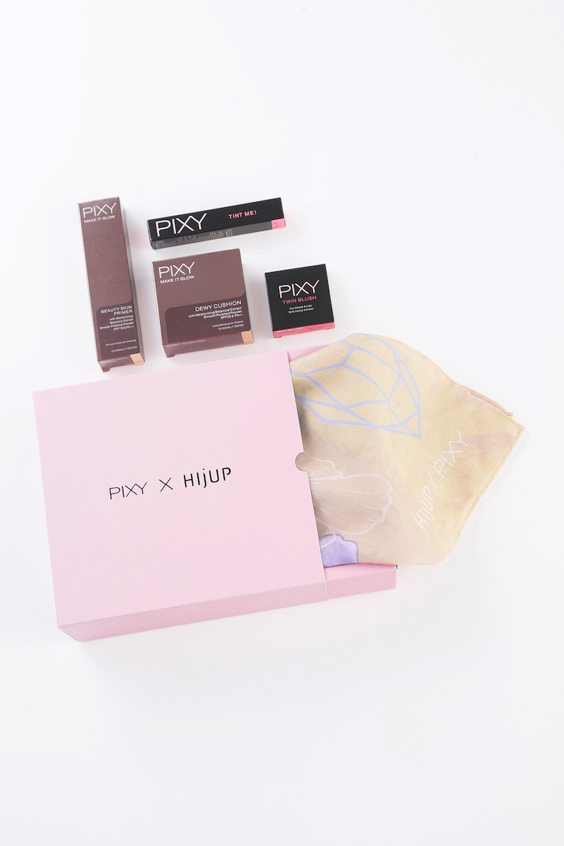 Selain melansir koleksi hijab set dengan hijab warna nude. Kolaborasi HIJUP SCARF X PIXY juga meluncurkan koleksi Marakech Fresh Package yang berisi satu set paket spesial kosmetik dan hijab scarf motif cantik berwarna bold.