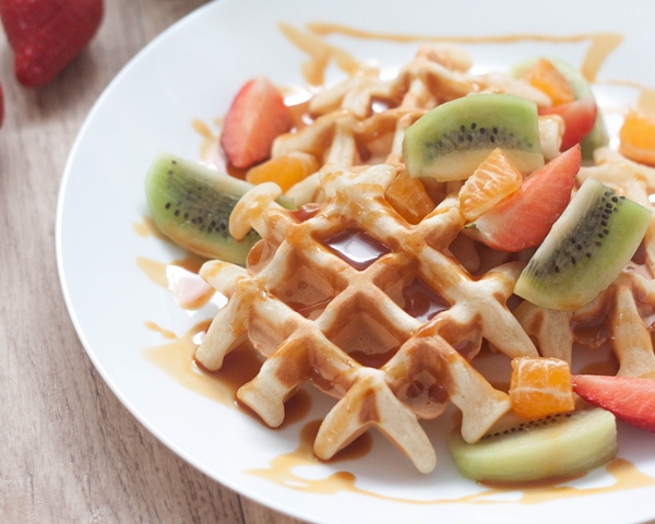 4. Siapkan cetakan waffle, panaskan dan oles dengan butter, masukkan adonan 2 sendok sayur, masak hingga matang, lakukan hingga adonan habis