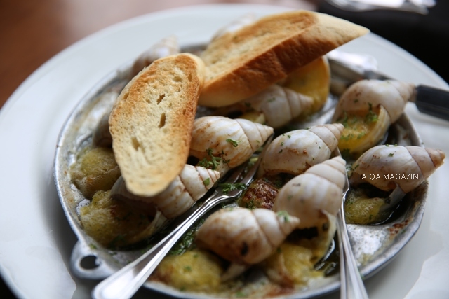 Oh well, ini merupakan paduan escargot dan butter yang paling sempurna yang pernah kami temukan. Rasanya sama sekali tidak amis dan rasa asinnya pas. Disajikan dengan dua helai roti kering.