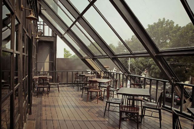 Bangunan tiga lantai ini menampung sampai dengan 200 orang. Lantai pertama berupa mini bar dan no smoking area. Lantai pertama ini dibuka sedari pagi, diperuntukkan untuk mereka yang ingin sarapan dan minum kopi sebelum berangkat kerja. Lantai dua terdiri dari tiga bagian; yaitu ruang VIP untuk meeting, ruang keluarga, dan ruang teras. Jika ingin menikmati ruang teras, kamu bisa memilih waktu sore hari karena bangunan kaca membuat ruangan ini sangat panas. Terakhir, lantai 3 adalah ruang VIP dengan kapasitas hanya sekitar 8 orang. Lantai 3 ini terdiri dari sofa-sofa klasik dan cocok digunakan untuk private event.