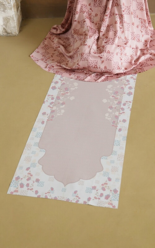 Sajadah ini didominasi oleh warna pink lembut yang memberikan kesan feminin dan elegan. Dengan motif floral yang tersebar di sekeliling pinggiran sajadah, sajadah ini memberikan nuansa segar dan indah saat digunakan.
