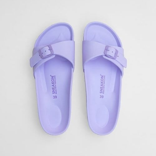 Rekomendasi yang pertama ini lebih cocok untuk para penggemar sandal bermodel simpel. Pasalnya, sandal ini tidak punya banyak variasi. Bahkan hanya terdiri dari satu tone warna, yaitu ungu pastel.