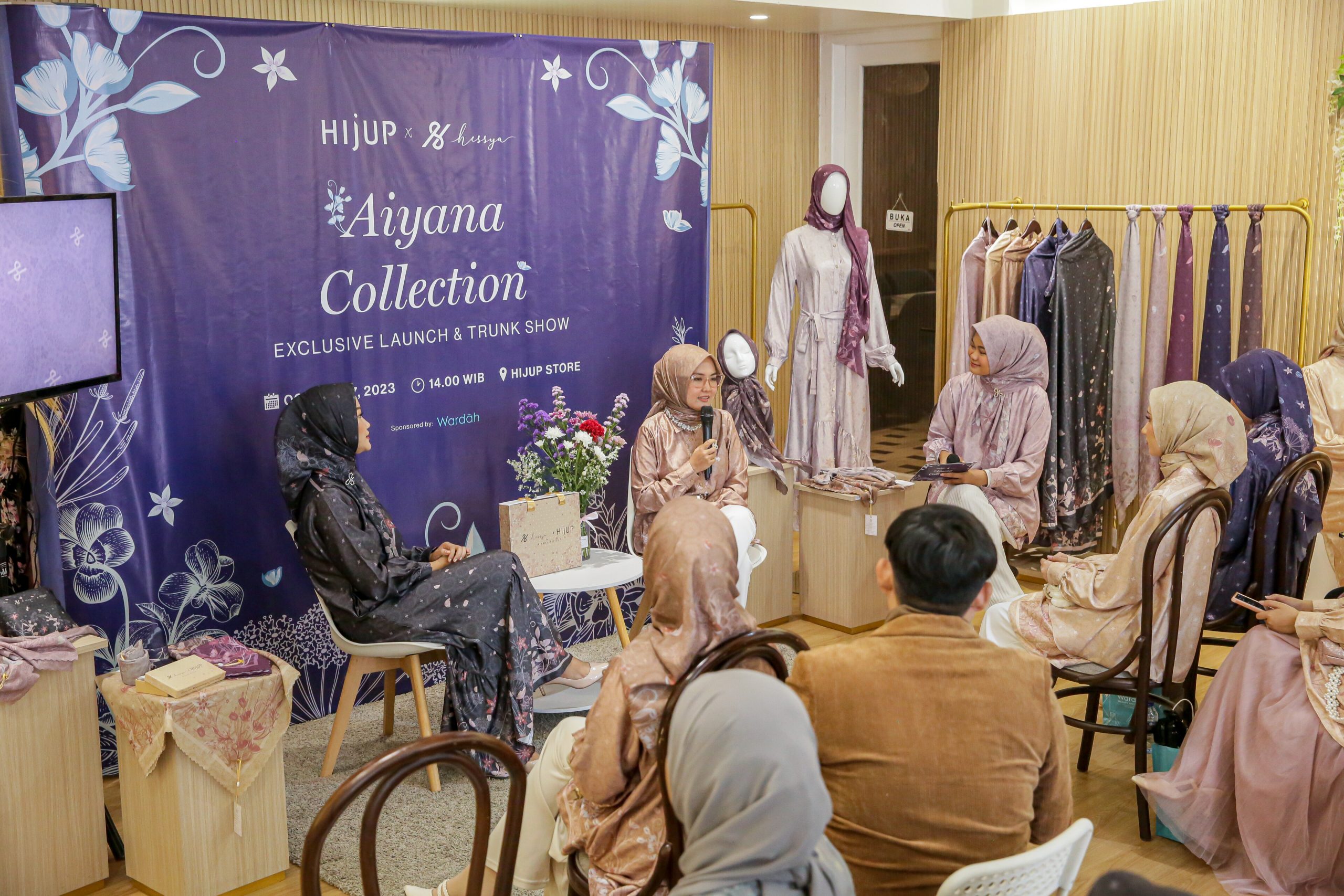 Peluncuran produk kolaborasi Aiyana Collection tersebut digelar pada Hari Sabtu, 7 Oktober 2023 di HIJUP Store Jakarta yang dimeriahkan dengan beberapa keseruan seperti Trunk Show bersama selebgram dan juga loyal customer dari Hessya dan HIJUP, Personal Color Analysis bersama Wardah, dan juga Dinner sebagai penutupan acara.
