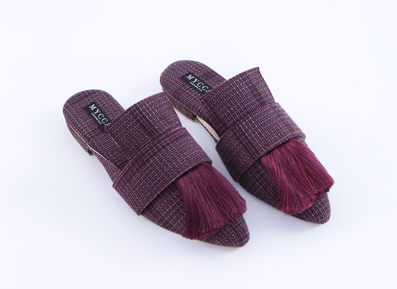 Mycca Shoes – Vanessa Tassel Mules Maroon
