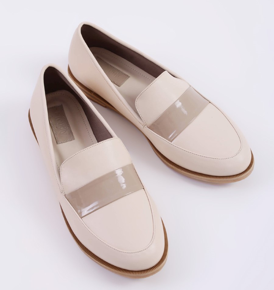 Untuk gaya ke kampus yang chic, kenakan loafers dengan detail dual-toned dan sol yang ringan.