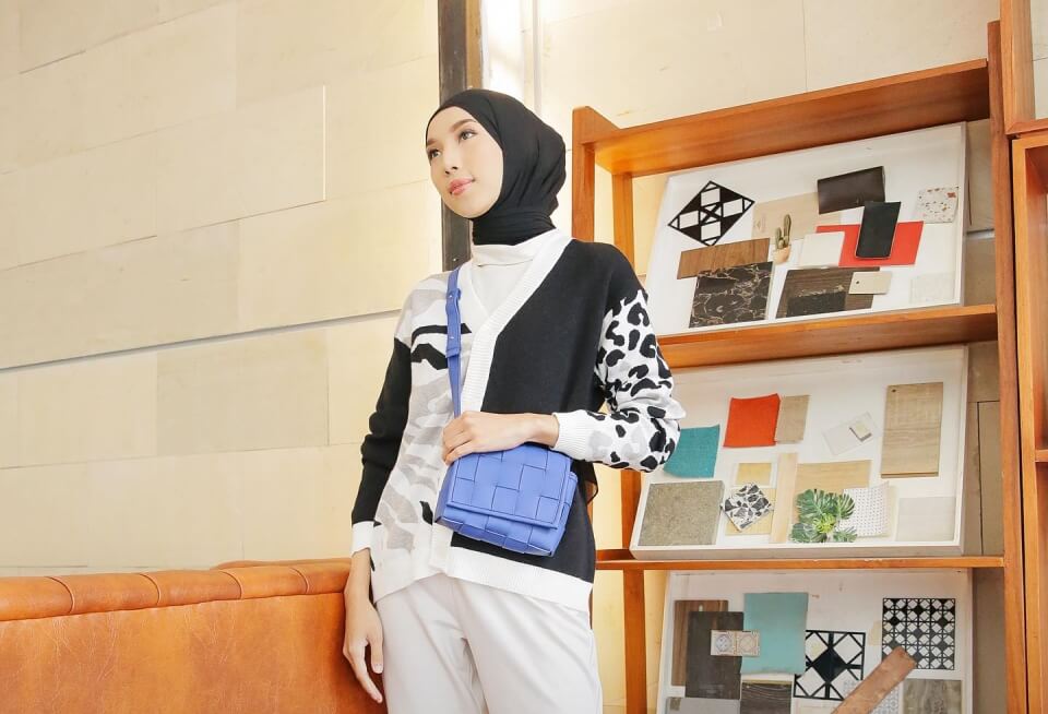 Kamu bisa mengenakan hijab putih bersih untuk melengkapi penampilan. Warna cerah dari hijab akan menyeimbangkan kontras antara hitam dan putih dalam setelan, menciptakan penampilan yang harmonis dan memikat.