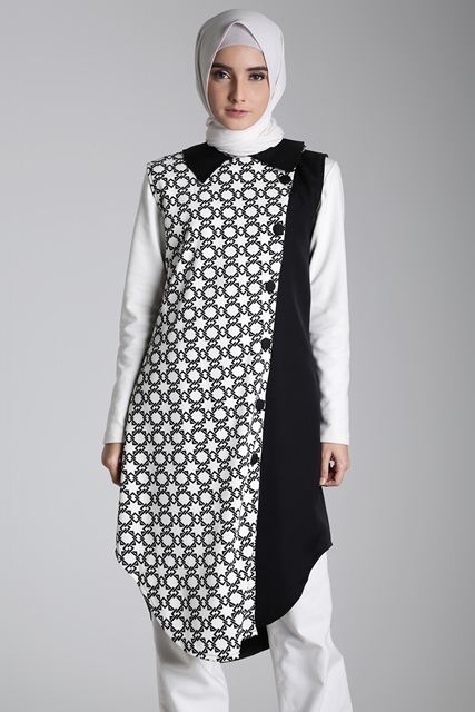 Bila ingin tampil berbeda, cobalah untuk mengenakan vest dengan potongan asimetris. Meski berpotongan asimetris, vest ini tetap terlihat dinamis dengan adanya aksen motif geometris bernuansa monokrom. Padukan dengan inner bernuansa hitam atau putih untuk memaksimalkan gaya weekend-mu.