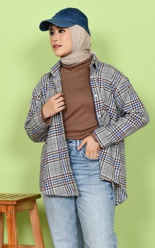 5 Style Kemeja kotak-kotak Ala Korea Untuk Wanita Berhijab