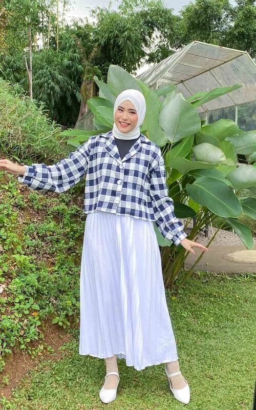 Buat pecinta drama Korea, mungkin sudah tidak asing lagi ketika pemain utamanya memilih busana kemeja kotak-kotak yang dipadukan dengan rok plisket. Hanya saja, untuk hijabers tentu perlu memilih rok panjang.