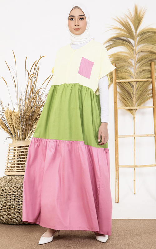 Kamu suka baju polos? Dress ini bisa jadi pilihan home dress kamu, nih! Dress polos ini nyaman untuk menemani kamu beribadah karena punya potongan lengan yang pendek. Ada detail resleting depan yang busui-friendly. Selain itu, dress ini punya banyak pilihan warna yang bisa kamu sesuaikan dengan warna favorit kamu, loh!