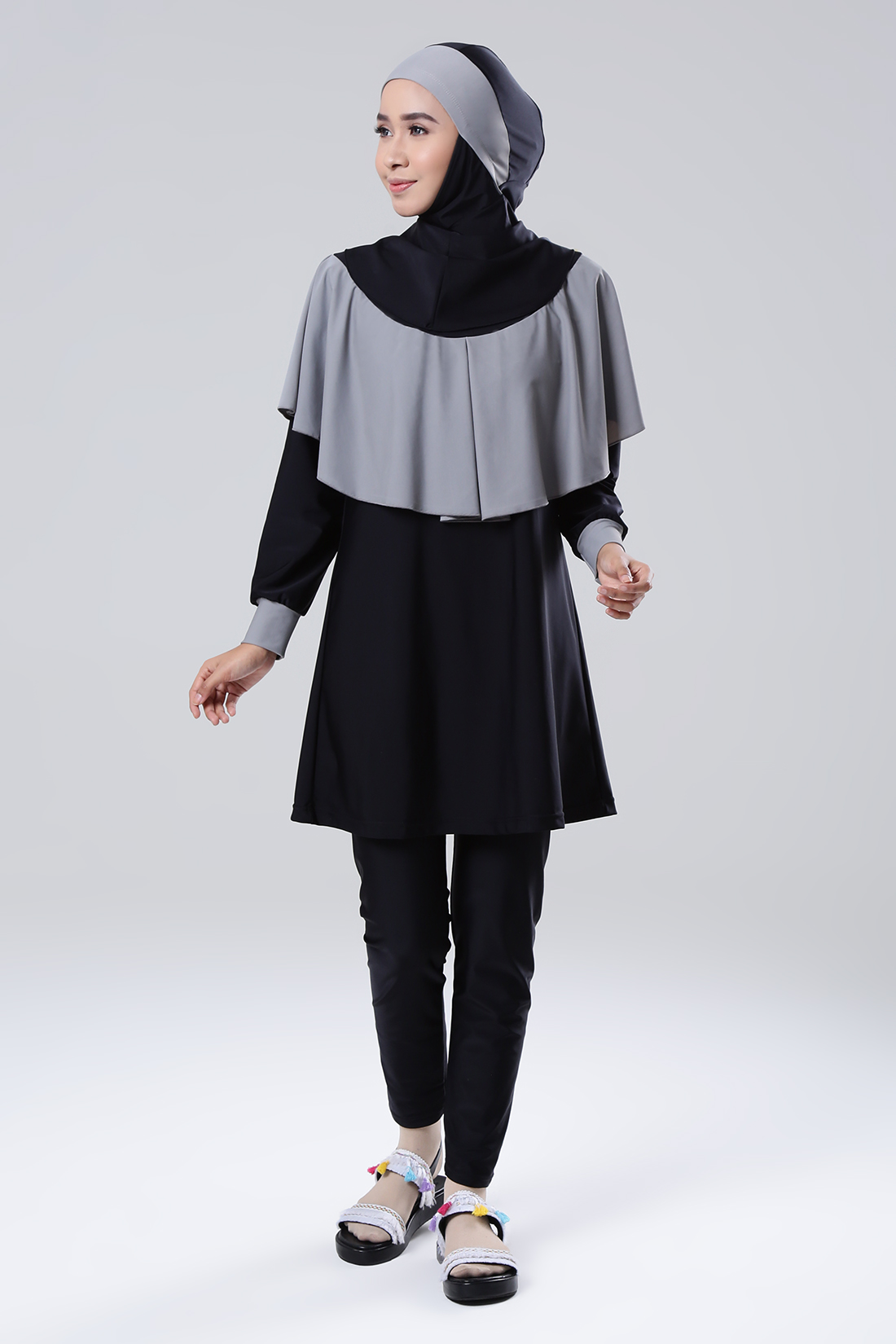 Tips memilih baju renang muslimah yang terakhir adalah pilihlah warna yang gelap, seperti hitam, coklat, biru dongker, abu-abu, dan warna gelap lainnya. Hal ini karena warna gelap dapat membantu menyamarkan lekukan tubuh sehingga kamu tidak menjadi pusat perhatian saat berenang.