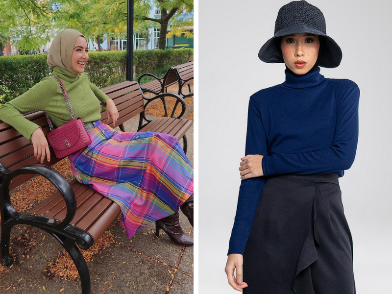 5. Bergaya Chic Lewat Padananan Turtleneck Top