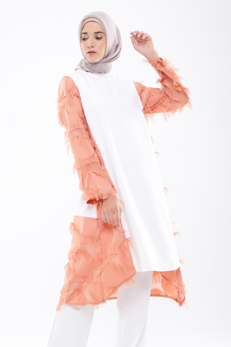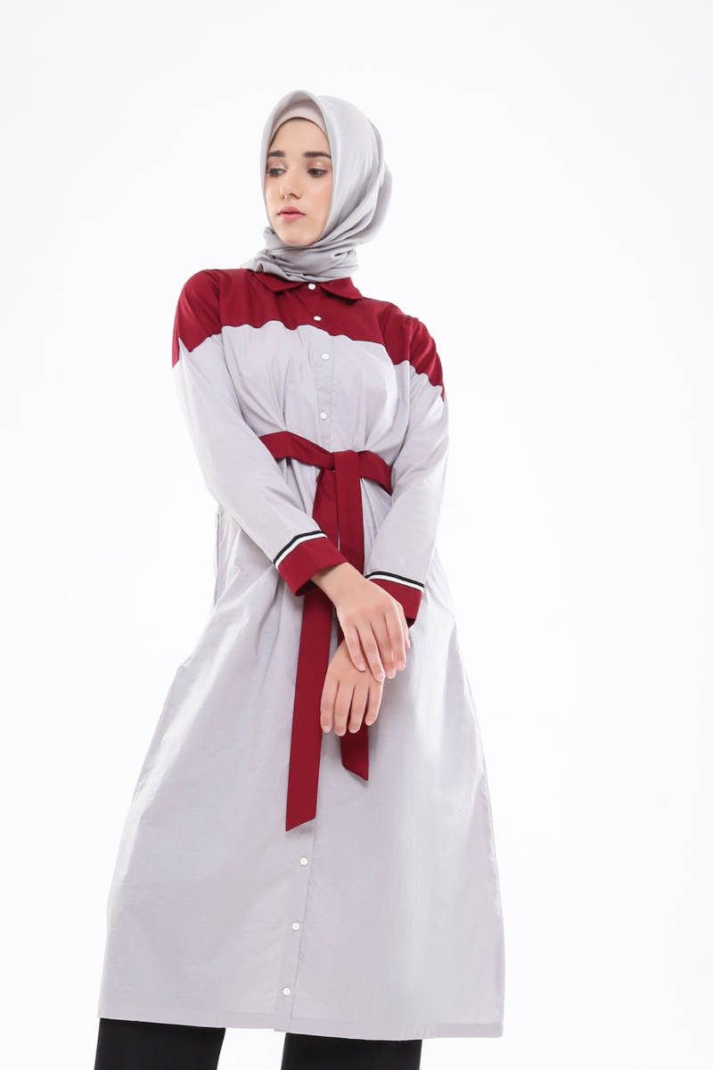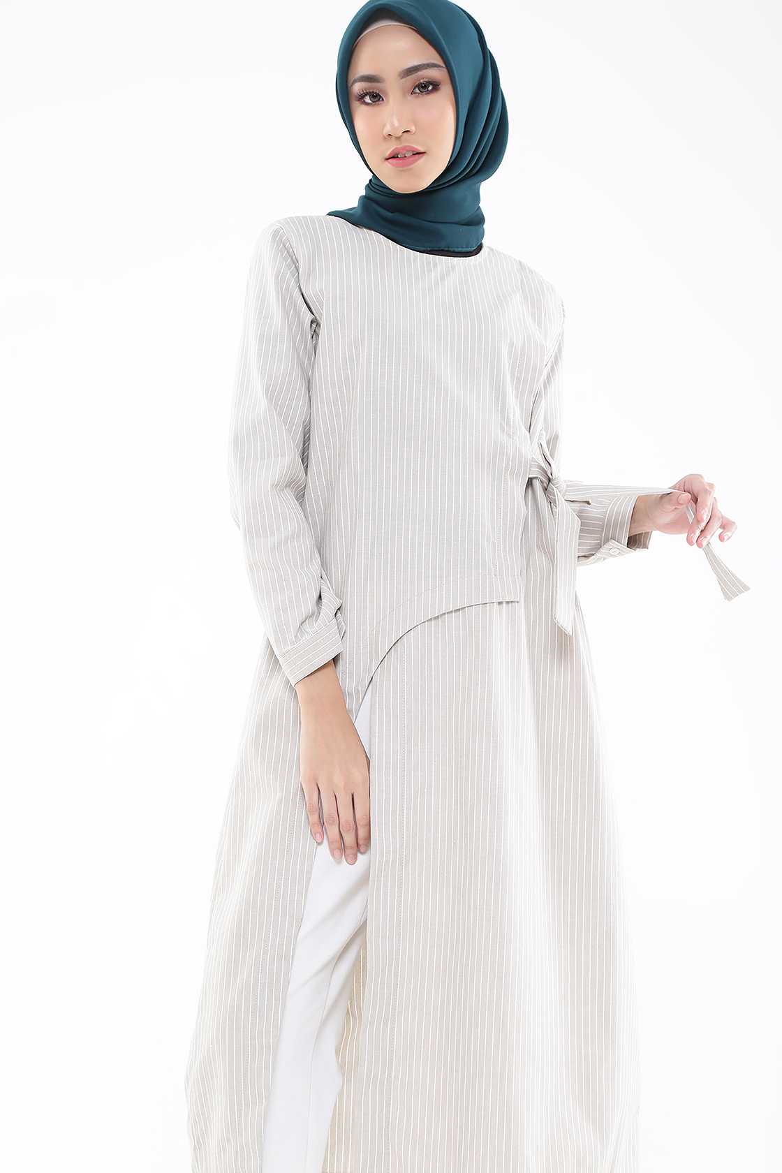Tunik bisa tampil lebih feminin dan stand out dengan detail pita di bagian pinggang. Cukup padukan dengan jilbab berwarna senada agar tunikmu menjadi statement dari tampilanmu.