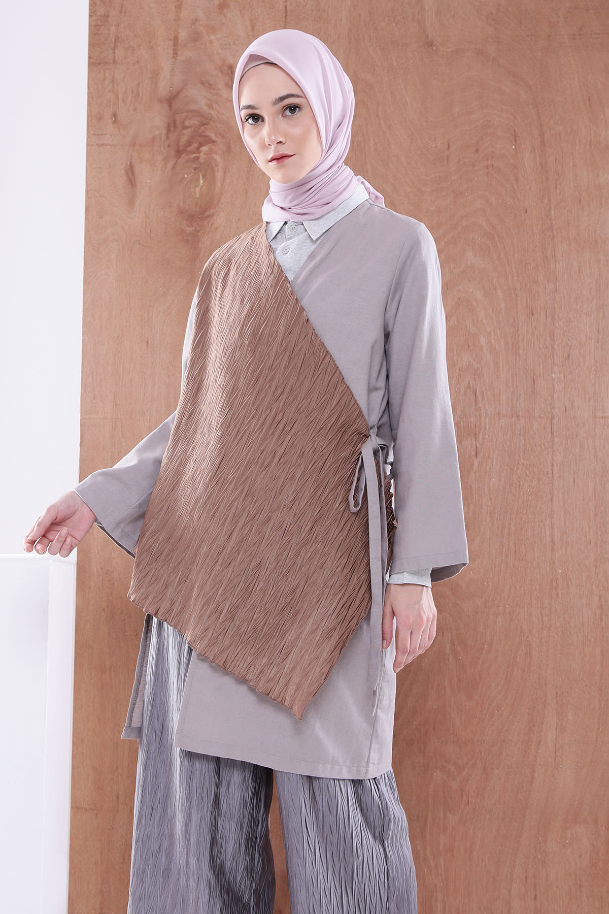 Hadirkan gaya harian yang extra stylish dengan Pleats Tunic. Tunik dengan detail pleats dan desain wrap over ini juga dapat dikenakan sebagai outerwear.