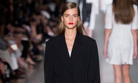 Pilihan warna lipstik merah sepertinya memang akan selalu menjadi pilihan. Selain membuat penampilan terlihat dramatis, warna merah juga membuat bibir tampak lebih penuh. Seperti pagelaran Donna Karan, DKNY menampilkan warna-warna monokrom seperti hitam, putih, dan abu-abu. Untuk menyempurnakan penampilan para model, warna merah dipilih agar terlihat lebih kontras.