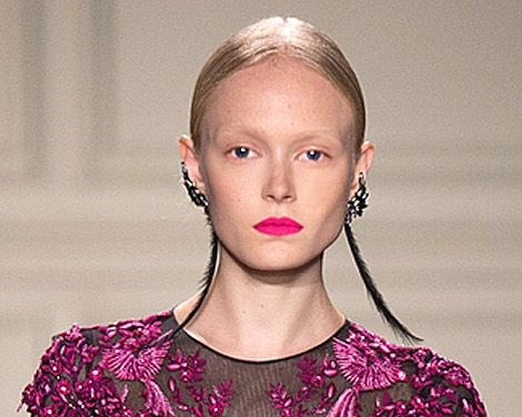 Lipstik berwarna fuschia,yang merupakan perpaduan warna pink terang dan ungu menjadi pilihan yang sempurna untuk melengkapi kesan feminin. Seperti yang ditampilkan desainer Marchesa yang kerap menampilkan gaun-gaun mewah dengat detail ruffles, renda dan bahan tulle. Untuk riasan Marchesa memilih riasan natural tetapi fokus pada warna bibir yang terang.