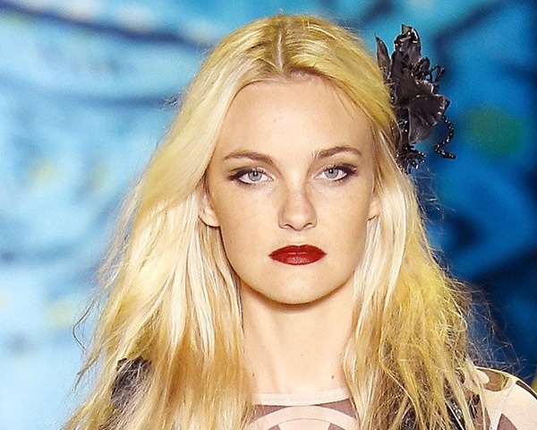 Desainer Anna Sui menghadirkan koleksi dengan penuh motif dan warna. Untuk mendapatkan kesan kontras, warna lipstik merah gelap pun dipilih. Sedangkan untuk riasan, cukup mengaplikasikan eyeliner tebal untuk membingkai mata. Warna merah gelap memang menjadi tren warna 2015. Tampaknya warna ini juga akan tetap diminati di tahun 2016 mendatang.