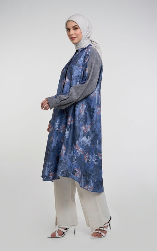 Motif bunga yang ceria ini sangat cocok untuk momen Halal Bi Halal yang penuh kehangatan. Nah, agar penampilan lebih maksimal, coba deh kombinasikan tunik ini dengan bawahan berwarna putih atau pastel lainnya.