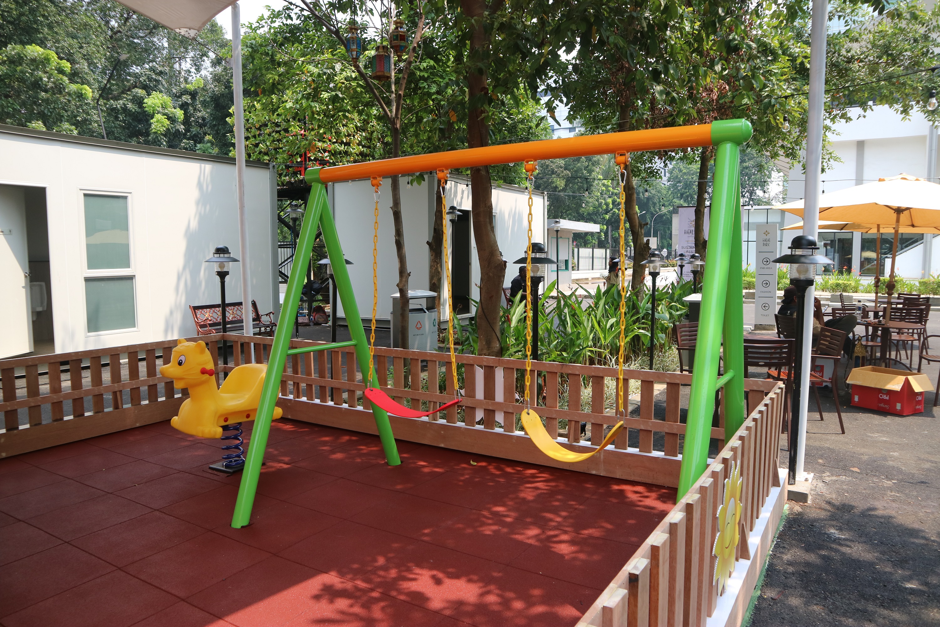 Playdate di Halal Park bersama si kecil, Bunda tak perlu khawatir saat si kecil bermain di area playgroud, karena area ini menyediakan permainan yang seru untuk si kecil yang bisa melatih kreativitasnya dan kegiatan fisiknya serta tentunya memiliki keamanan yang terjamin untuk si kecil saat bermain.Tak hanya itu, disini si kecil juga bisa melatih kehidupan sosialnya dengan bermain dan berkomunikasi bersama teman sebayanya yang juga sedang bermain di area ini.